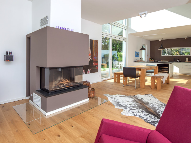 Feuer per Knopfdruck macht der Gaskamin möglich. Denn hier entflammen (und erlöschen) Holzscheitimitate auf Kommando der Fernbedienung, indem Gas freigeschaltet und automatisch entzündet wird. Optimalerweise besteht ein Gasanschluss für den Kamin, alternativ kann er je nach Modell auch mit Flüssiggas betrieben werden. Auch ein Gaskamin benötigt übrigens einen Schornstein und die regelmäßige Überprüfung durch den Schornsteinfeger. Die Vorteile des holzlosen Systems liegen auf der Hand: es entfallen die notwendige Beschaffung sowie die Lagerung von Holz und es entsteht somit auch weniger Dreck. Der Nachteil: auf die knisternde Holzverbrennung mit dem typischen Geruch muss verzichtet werden.