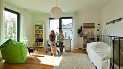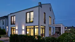 Dieses Haus ist ein hervorragendes Beispiel dafür, warum weniger manchmal mehr ist. Denn das reduzierte, modern-puristische Design dieses Hauses ist ein absoluter Hingucker. Die Fassade schlicht, ein Dach ohne Überstand, dafür großflächige Fenster, die viel Licht ins Hausinnere bringen. Die klaren Formen spiegeln sich auch in den Innenräumen wieder, die einladend offen, aber gleichzeitig so durchdacht konzipiert sind, dass sie keinen Platz unnötig verschenken. Auch praktisch: Von der angrenzenden Garage gelangt man mit den Einkäufen trockenen Fußes in den Hauswirtschaftsraum. Ebenso ist ein Abstellraum mit eigenem Ein-/Ausgang angeschlossen, der sich optimal für verschmutzte Schuhe, Werkzeug oder den Hausmüll eignet.