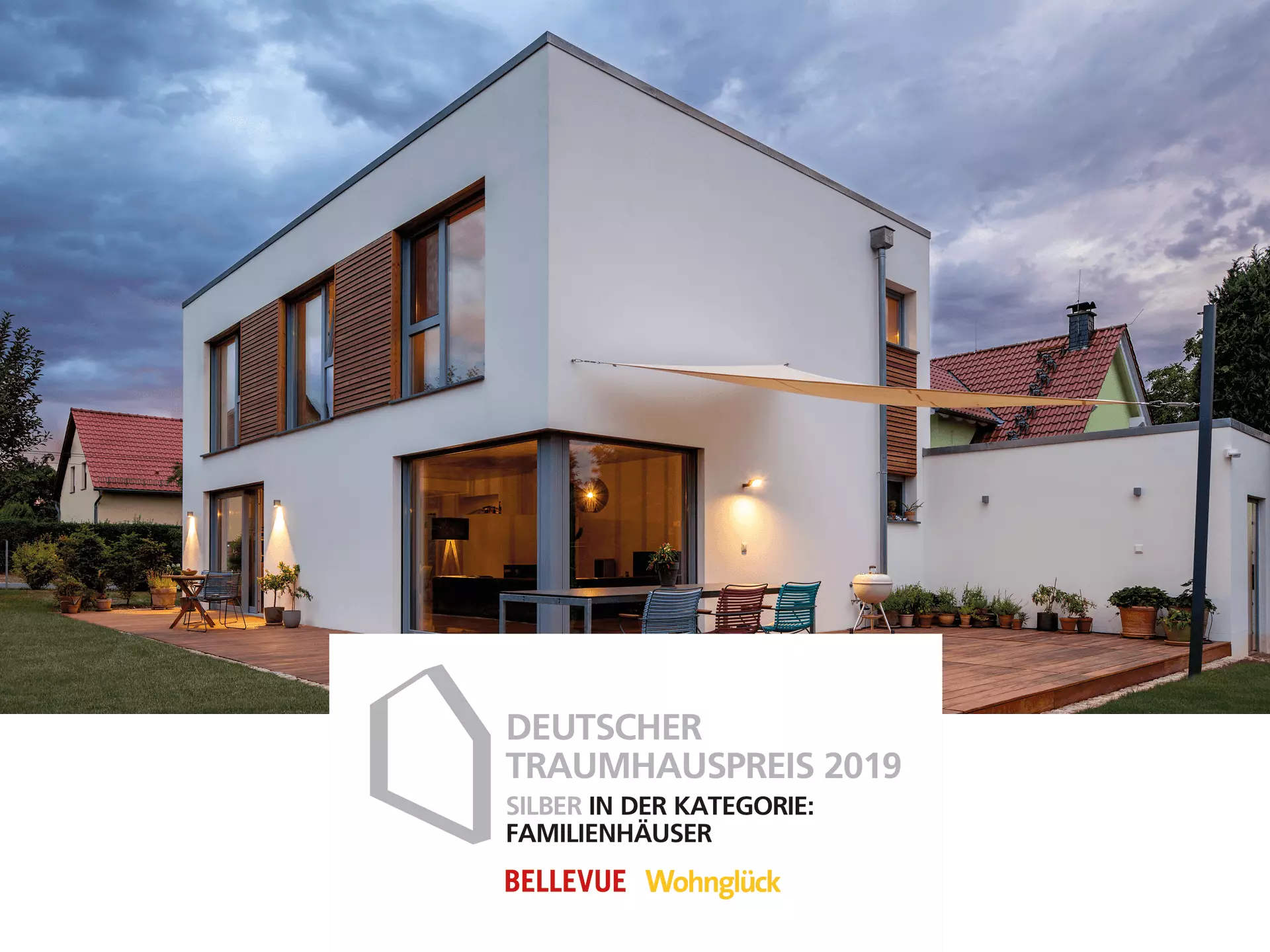Unser Haus Poschmann erreicht beim Deutschen Traumhauspreis 2019 Silber in der Kategorie „Familienhäuser“. 49 Hauskandidaten in sieben Kategorien standen zur Wahl. Über 30.000 Leser der Zeitschriften BELLEVUE, Europas größtem Immobilienmagazin und Wohnglück, dem Magazin der Bausparkasse Schwäbisch Hall haben abgestimmt und damit einen neuen Teilnehmerrekord aufgestellt. Wir bedanken uns ganz herzlichen für Ihre Stimme.